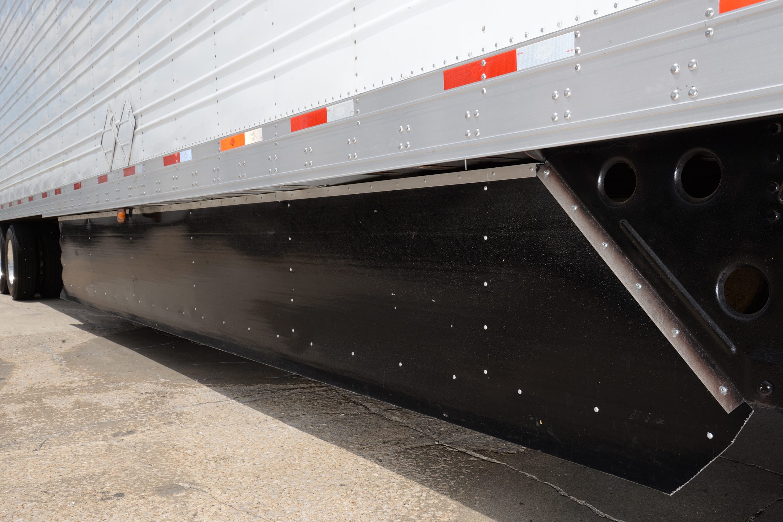 Skirts & Tails: a trailer equipped with traditional trailer skirts (from landing gear to rear trailer axles) and tails, can improve fuel efficiency as much as 1-2%. Which is more important? The skirts…by a ratio of 2-to-1. How much to you spend on fuel per year? How about over the life of the trailer? We hear from companies that don’t want to “mess with” the tails for loading and unloading, but the skirts are a must.