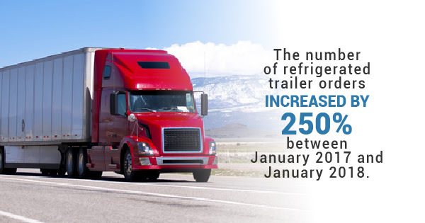 Between January 2017 and January 2018, the number of refrigerated trailer orders jumped 250%. Renew reefer trailers given trucking companies the advantage of buying like-new trailers with new reefer units at a lower price.